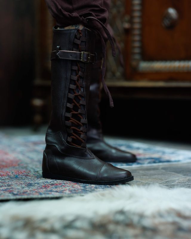 Las botas con cordones «Taras» se inspiran en las botas de montar tradicionales de los cosacos. En esta segunda edición, hemos mejorado aún más su ajuste para ofrecer aún más comodidad y flexibilidad. Fabricadas en resistente piel de vacuno, la caña se ajusta a la pantorrilla gracias a los cordones. Una correa con hebilla de latón proporciona mayor sujeción. Las botas «Taras» se pueden llevar tanto completamente cerradas como parcialmente abiertas y dobladas, lo que les confiere un aspecto versátil. Su corte es ligeramente más estrecho, pero se adaptan perfectamente al pie gracias a su material elástico. Para pies más anchos, recomendamos elegir una talla más o usar plantillas. En esta segunda edición, también hemos incorporado una suela de plástico impermeable con un perfil fino que proporciona buen agarre y durabilidad.