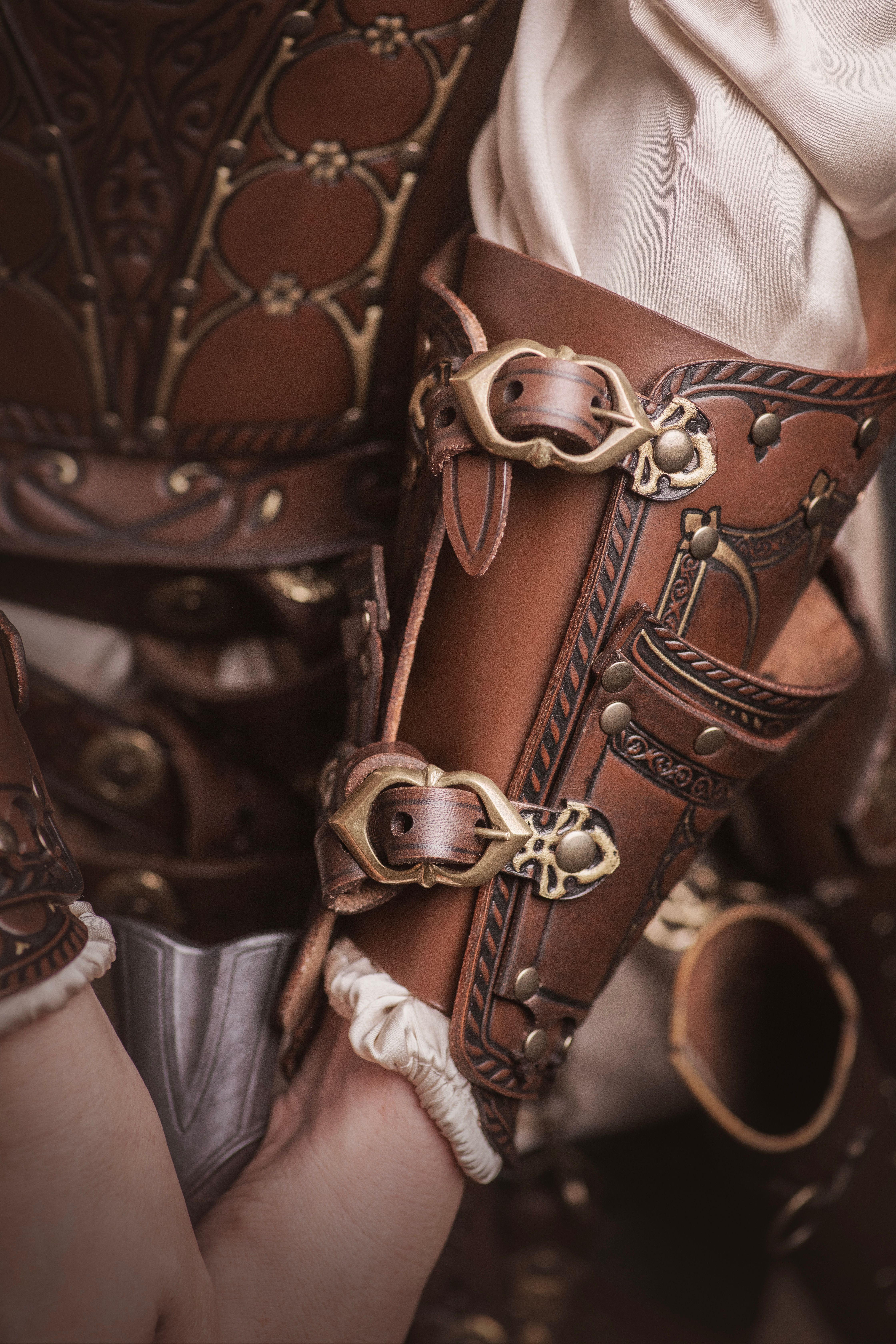 Los productos de cuero natural son muy duraderos y resistentes pero requieren un mantenimiento regular para mantenerlos flexibles y aumentar su vida útil. Asegúrese de que sus productos de cuero se mantengan libres de humedad cuando estén almacenados. Deje que el cuero mojado se seque naturalmente antes de tratar, o ayude a eliminar la humedad con una toalla o paño absorbente. Si el producto está frecuentemente húmedo y seco, aumente la frecuencia de mantenimiento. Para su limpieza recomendamos quitar la suciedad con un cepillo duro, luego frote suavemente con un paño limpio y húmedo hasta que el cuero se vea limpio y luego use un paño seco para limpiar el agua restante de la piel. Siempre debe acondicionar el cuero después de la limpieza, para ello recomendamos utilizar Grasa para Cuero Gold Quality, que puede ser adquirida aquí. El modo de empleo consiste en aplicarla con un paño limpio, frotando suavemente una pequeña cantidad en círculos sobre el cuero. Deje que el cuero se empape de la grasa antes de limpiarlo con un paño limpio final para eliminar el exceso de residuos. Sigue estos consejos y tus productos de cuero seguirán como nuevos tras años de Rol en vivo (LARP).
