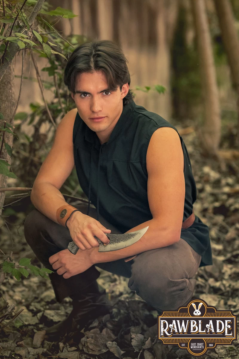 La camiseta sin mangas Outrider es la prenda definitiva para los aventureros que valoran la movilidad, la simplicidad y la presencia. Confeccionada con una resistente mezcla de poliéster y algodón, esta prenda sin mangas ofrece comodidad y resistencia a partes iguales, ideal para largas jornadas en eventos de rol en vivo, recreaciones históricas o representaciones de fantasía. Esta versátil camisa está disponible en seis colores inspirados en la tierra: burdeos, marrón, azul, verde, negro y crema. Cada tono se adapta a diferentes arquetipos de personajes, lo que permite una narrativa visual más profunda sin recurrir a adornos. Combínala con cinturones, brazaletes o chalecos de cuero para crear un look cohesivo, ideal para el campo de batalla o la taberna.Su corte sin mangas lo hace perfecto para usar en capas en climas cálidos o para personajes que buscan flexibilidad. Su tejido ligero es transpirable y resistente, manteniéndote cómodo durante horas, ya sea que estés luchando, marchando o interpretando un rol. Las aberturas laterales ofrecen mayor libertad de movimiento al usar cinturones o bolsas, mientras que su tejido resistente le da un toque práctico que perdura con el tiempo.