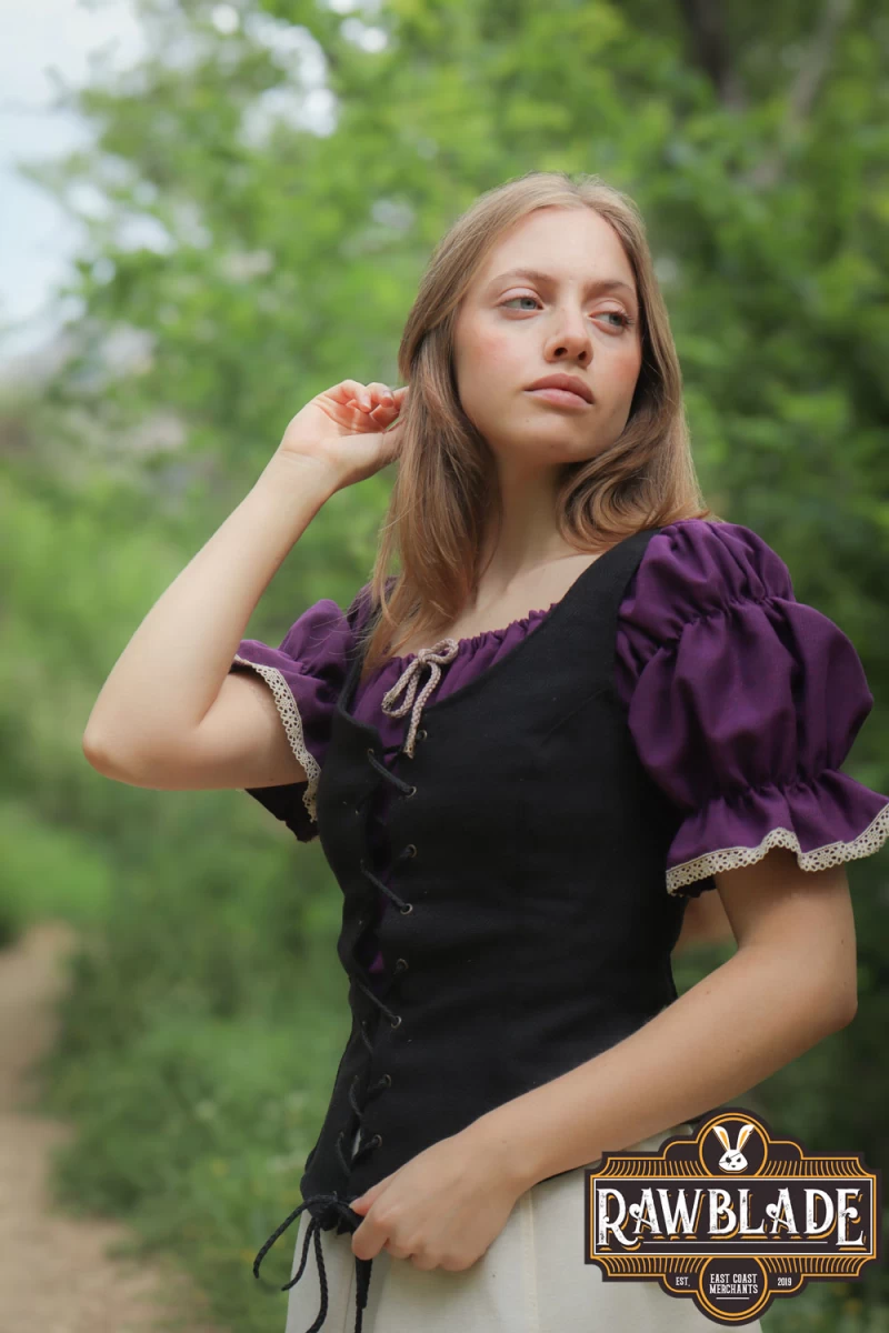 El corsé Emma de Rawblade es una prenda romántica esencial diseñada para amantes de la fantasía, jugadores de rol en vivo y entusiastas del Renfair. Hecho a mano en España con una resistente y cómoda mezcla de algodón y poliéster, este corsé ofrece una forma favorecedora con un tacto suave y estructurado, ideal para combinar con blusas o vestidos.