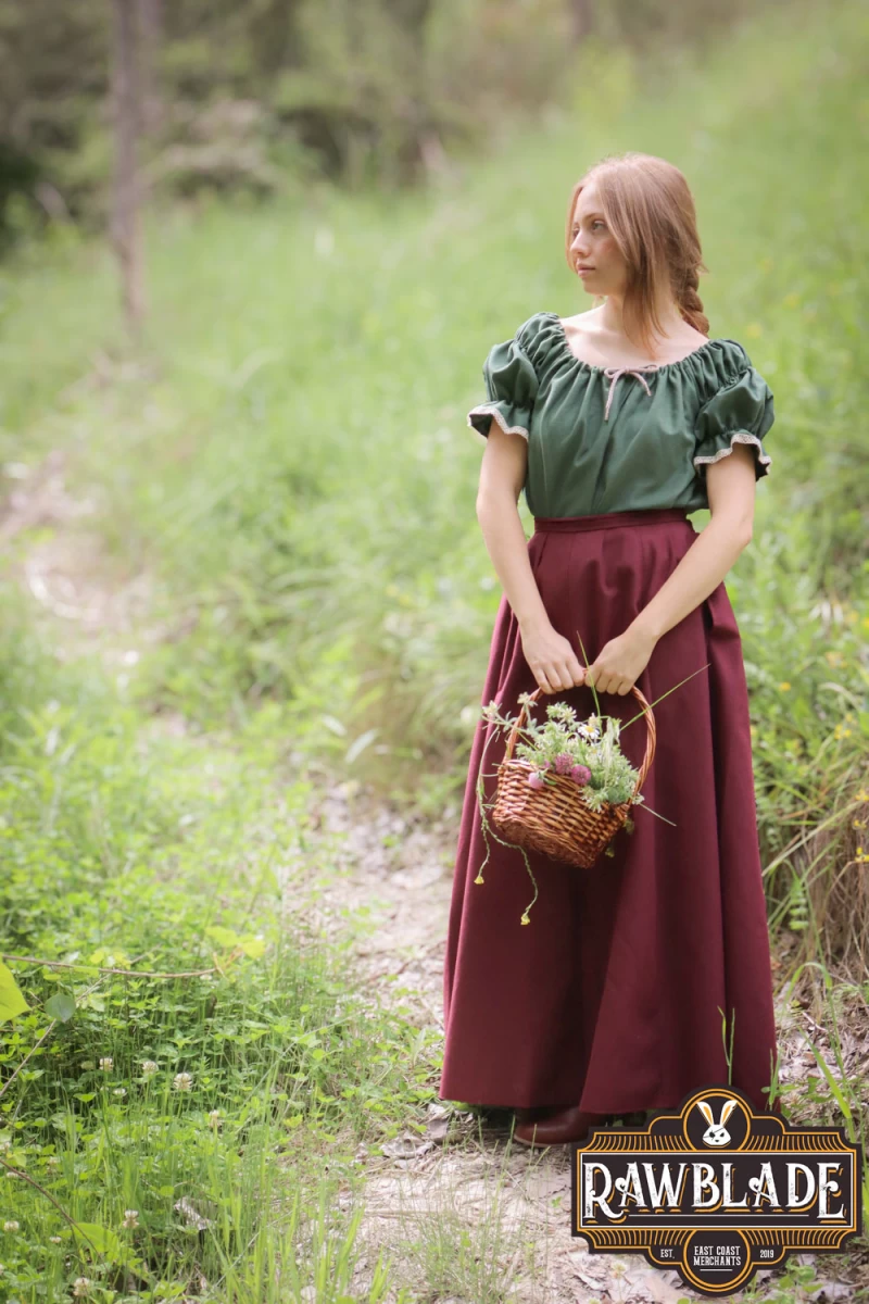 Su corte minimalista y cintura alta ofrecen una silueta favorecedora que combina a la perfección con corsés, blusas o túnicas, lo que la convierte en la base ideal para crear innumerables looks. Disponible en seis impresionantes colores (azul, marrón, negro, verde, burdeos y natural), se adapta a diversos roles, desde hechicera viajera hasta humilde campesina o noble elfa.